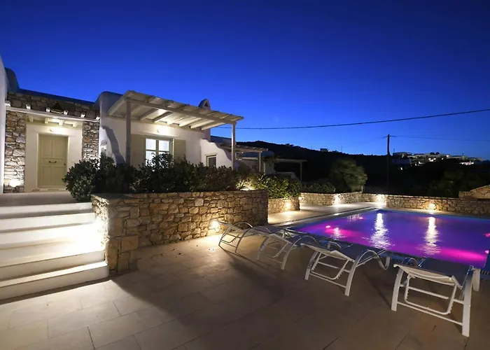 La villa Marvi House Villa, de 150 m^2, está ubicada a 10 minutos en coche del Museo Arqueológico de Miconos y a unos 10 minutos en coche de la Pequeña Venecia. Con un aparcamiento gratuito, una piscina exterior de temporada y una terraza, esta villa se encuentra en Ornos.